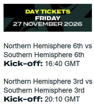 16:40 - Northern Hemisphere 6th vs Southern Hemisphere 6th Kick Off