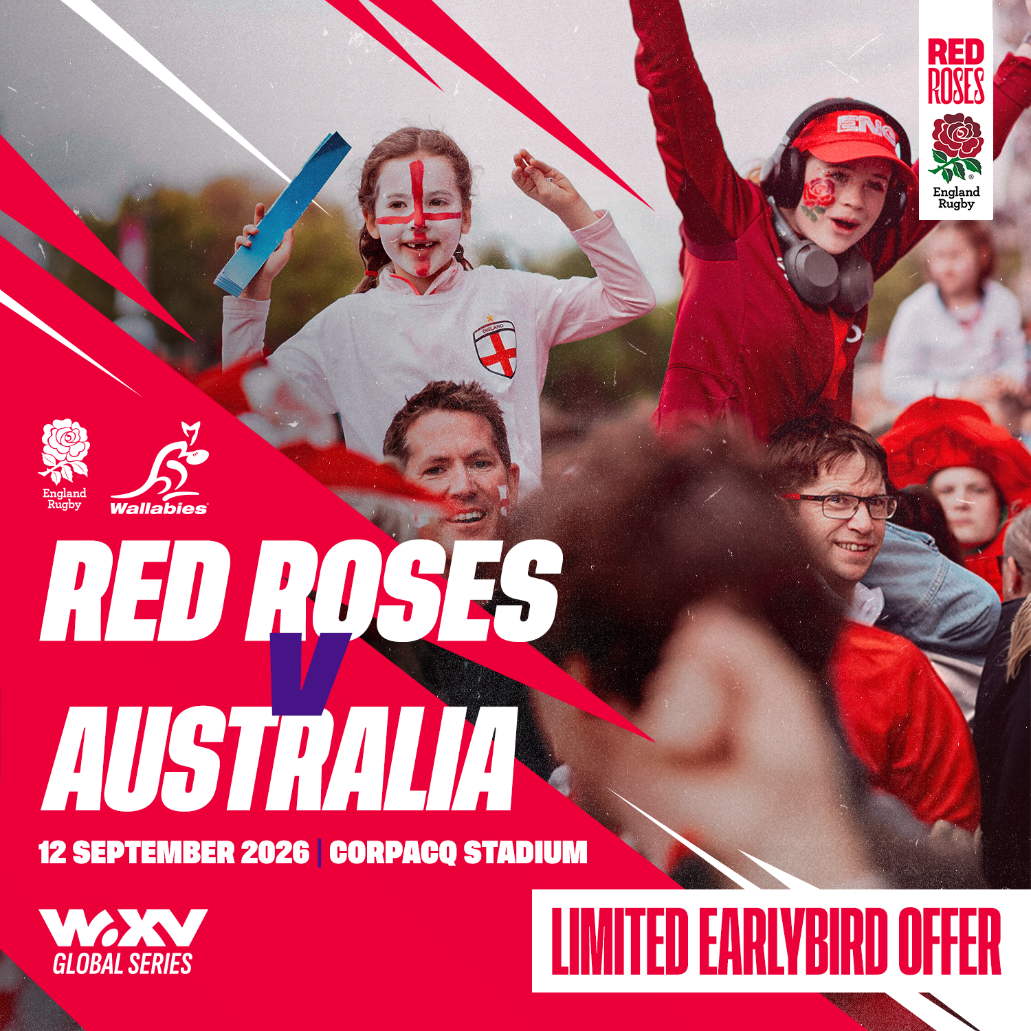 - WXV Global Series: Red Roses v Australia - CorpAcq Stadium, Salford - Saturday 12 September 2026, Kick-Off: 15:00